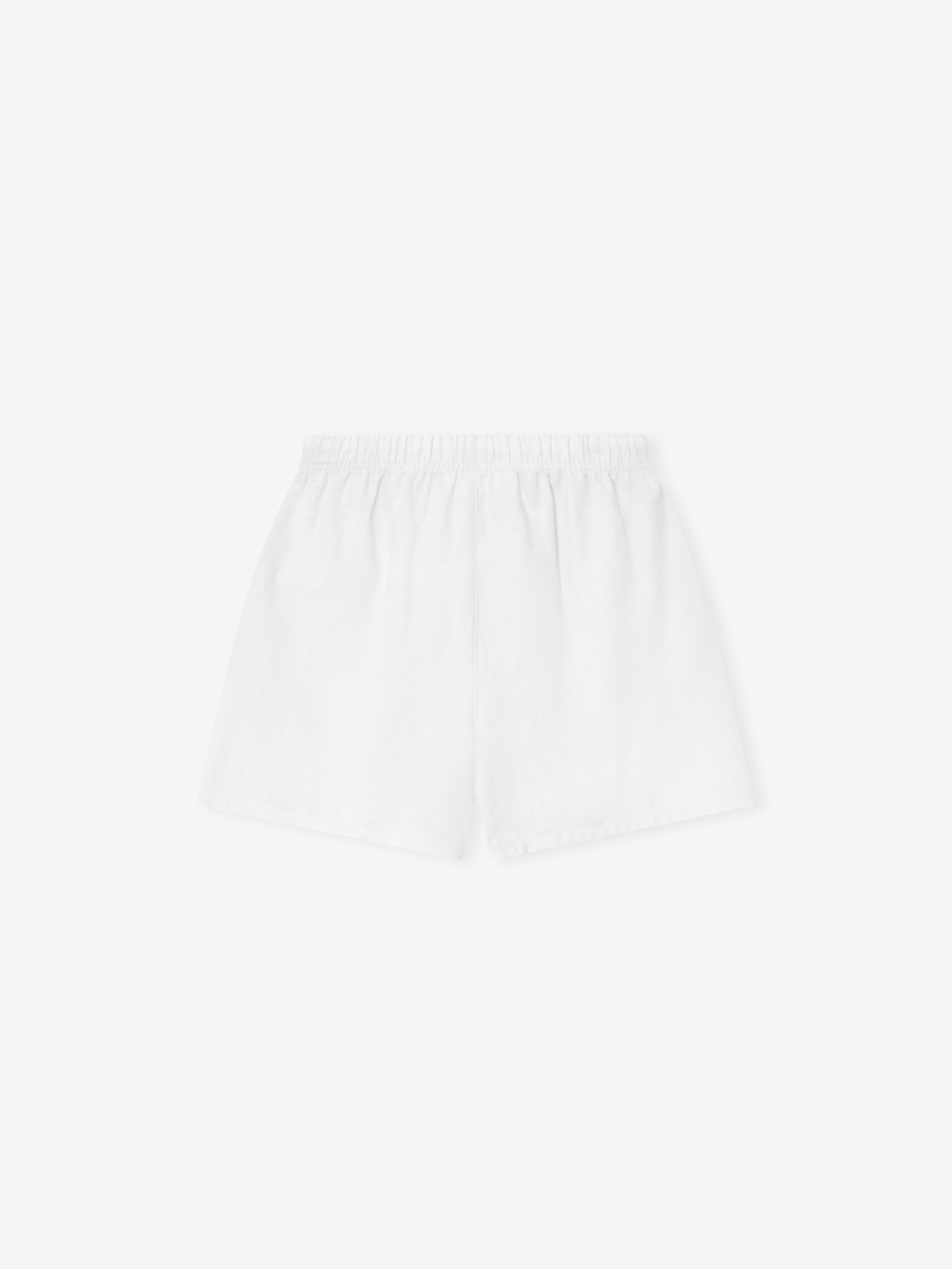 The Womens Classic Short is crafted from 100% cotton Oxford cloth for lightweight comfort. The short is designed to have a mid-length and a rounded, feminine contour. Key features include side pockets and an encased elastic waistband with drawstrings. Additionally, a Fear of God Essentials rubberized label is positioned at the center front.