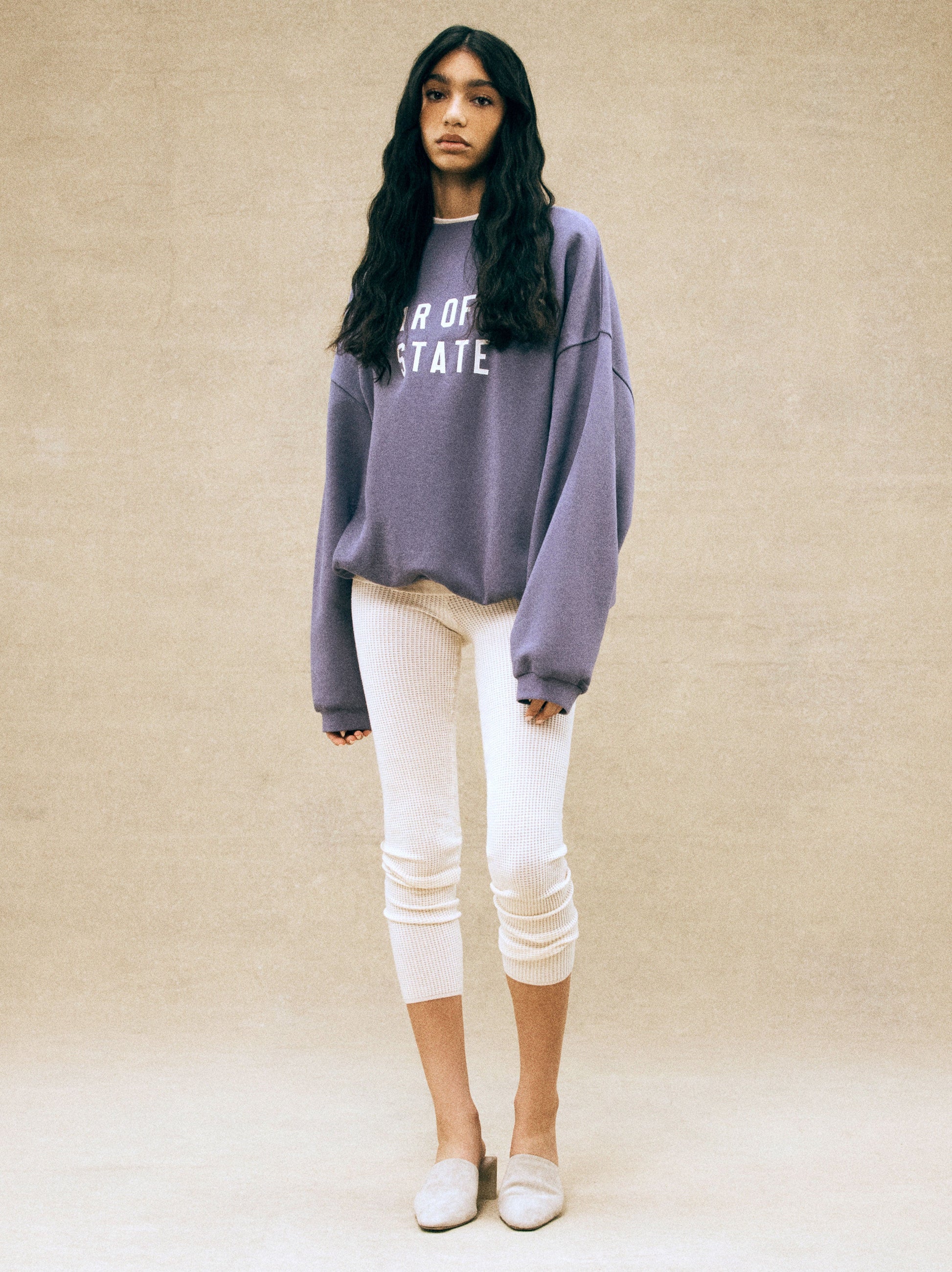 The Womens Waffle Biker Legging is made a poly-nylon waffle knit for stretch comfort and texture. The legging comfortably contours around the body, and is the ideal stand-alone or layering piece. A rib-knit elastic waistband is detailed with a new Fear of God rubberized label.