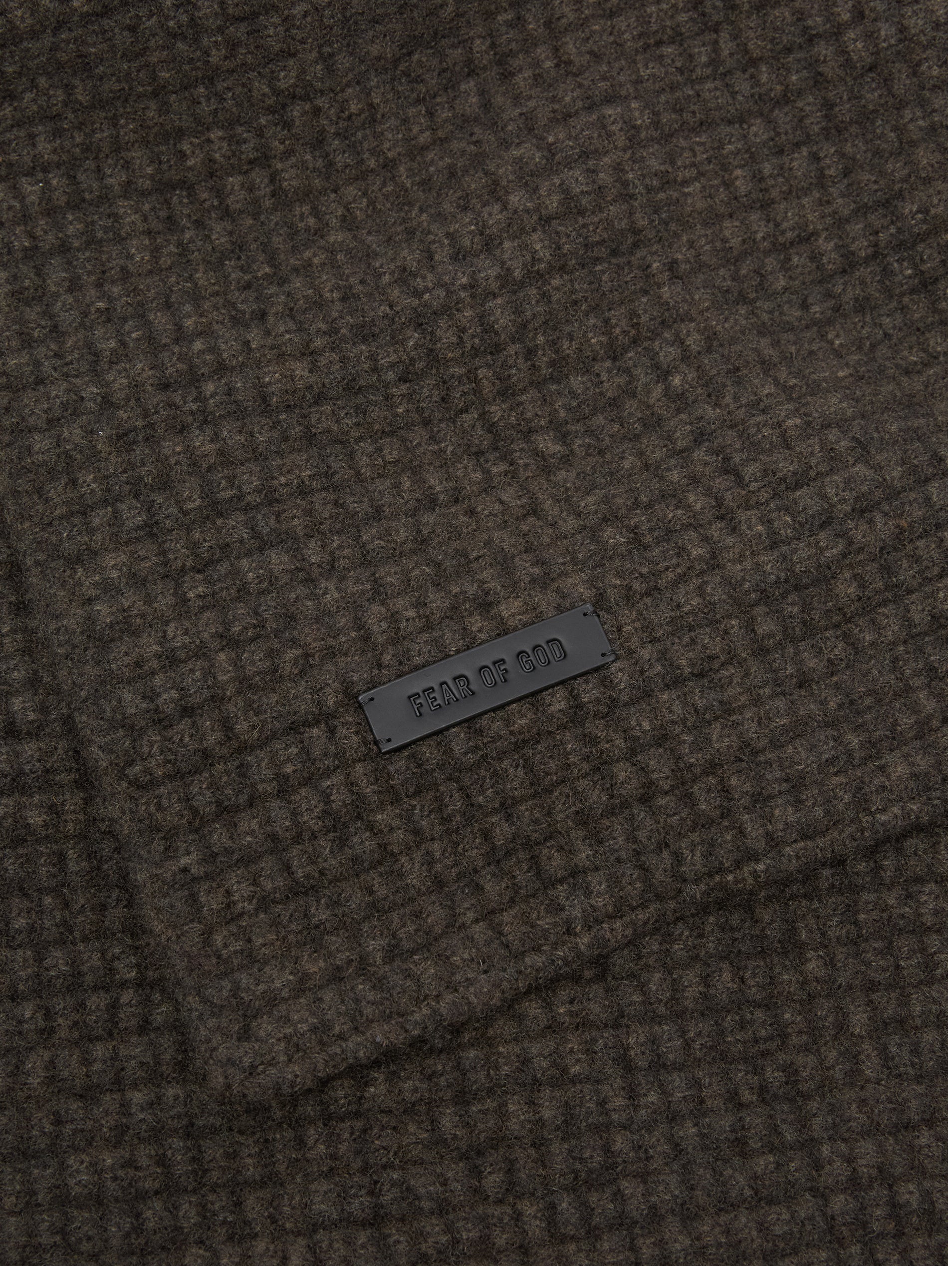 The Italian-crafted blanket is made in a waffle textured baby merino wool. The blanket is detailed with a debossed Fear of God branded label.
