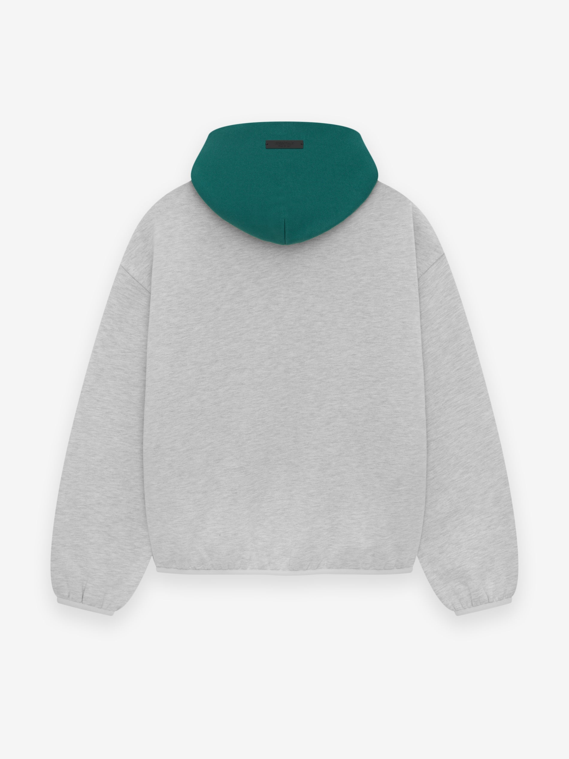 The Essentials Celtics hoodie is made from core fleece and showcases a trendy cropped silhouette. The front features a rubberized soft-touch "CELTICS ESSENTIALS" logo, along with the iconic NBA logo on the sleeve. Additional details include a contrasting double-layered hood, side seam pockets, and elastic bindings at the cuffs and hem. A rubberized "Essentials Fear of God" label is attached to the hood.