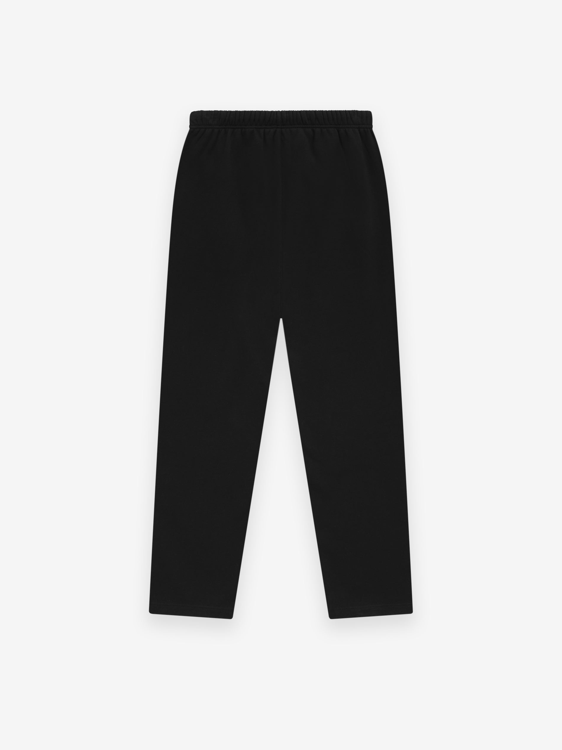 The Essentials NBA Relaxed Sweatpants are crafted from core fleece and feature a relaxed fit with a straight leg. The iconic NBA logo is displayed in rubberized soft-touch on the leg, showcasing the "NBA ESSENTIALS" lockup design. Additional features include an encased elastic waistband with elongated drawstrings and side seam pockets. A rubberized label from "Essentials Fear of God" is located at the center front.