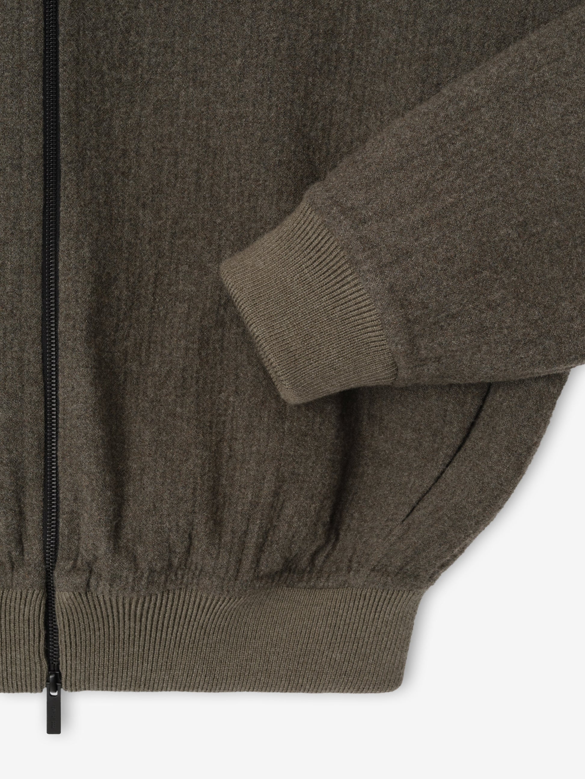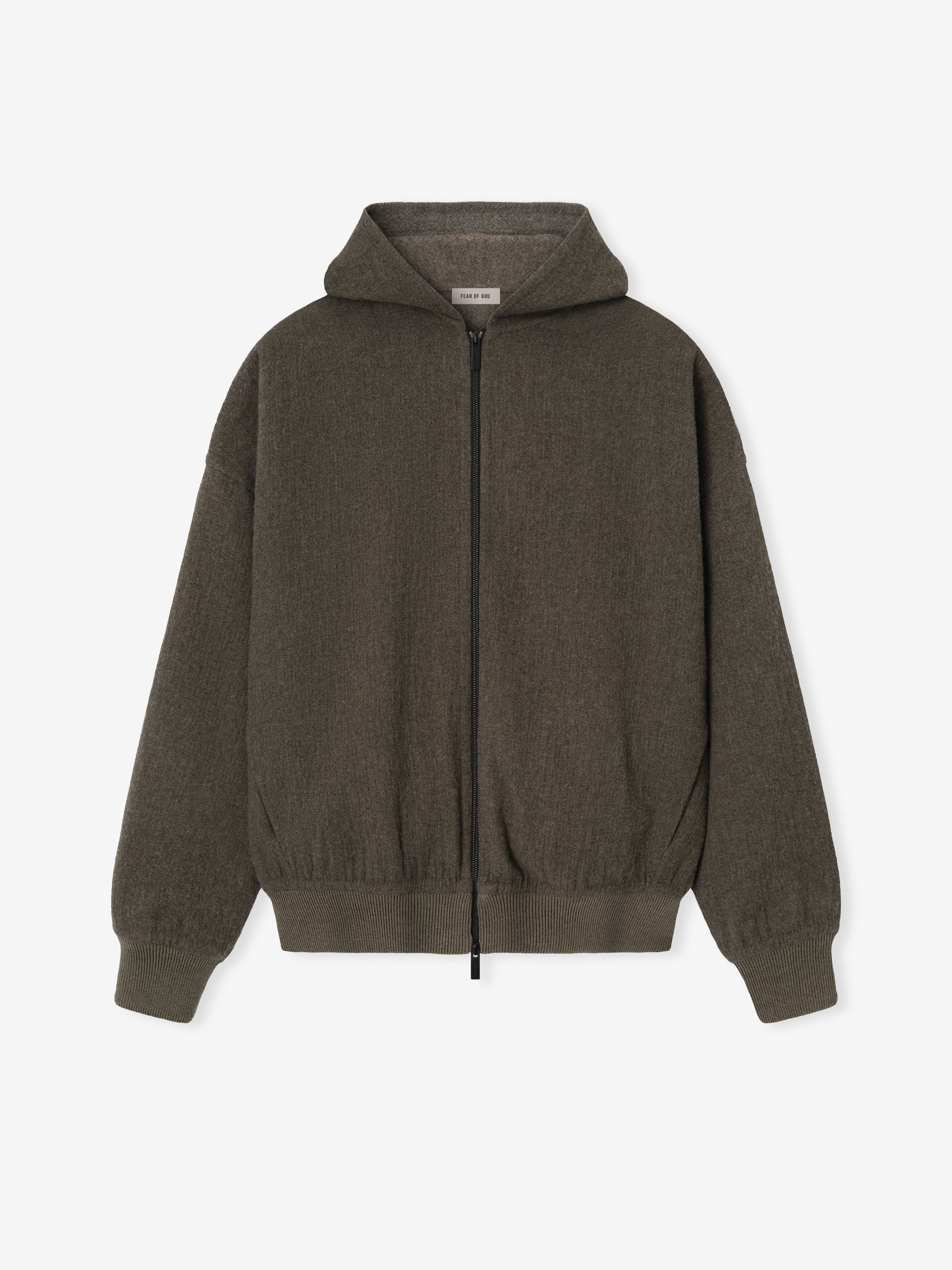 The Full Zip Hoodie is made in Italy from a blend of wool and nylon, providing visual texture for a refined sportswear approach. It features a relaxed fit, drop shoulders, a full zip front, side pockets, and rib-knit cuffs and hem.